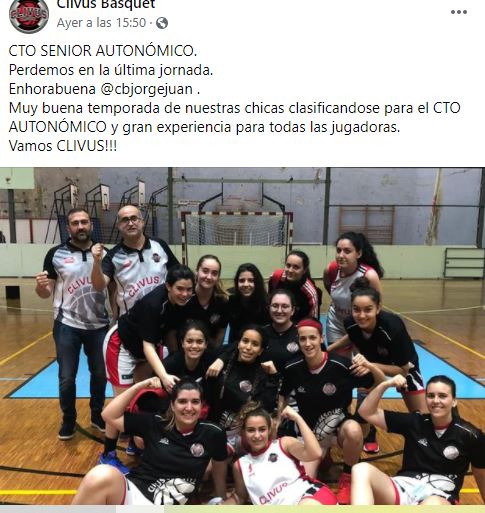 24 de mayo, 202125 de mayo, 2021 clivusbasquetcrevillent Muy buena temporada de nuestras chicas clasificándose para el CTO AUTONÓMICO y gran experiencia para todas las jugadoras . Vamos CLIVUS!!! https://www.facebook.com/plugins/post.php?href=https%3A%2F%2Fwww.facebook.com%2Fpermalink.php%3Fstory_fbid%3D155938609881244%26id%3D100063953160469&show_text=true&width=500 Comparte esto: Compartir en X (Se abre en una ventana nueva) X Comparte en Facebook (Se abre en una ventana nueva) Facebook Me gusta Cargando... Relacionado